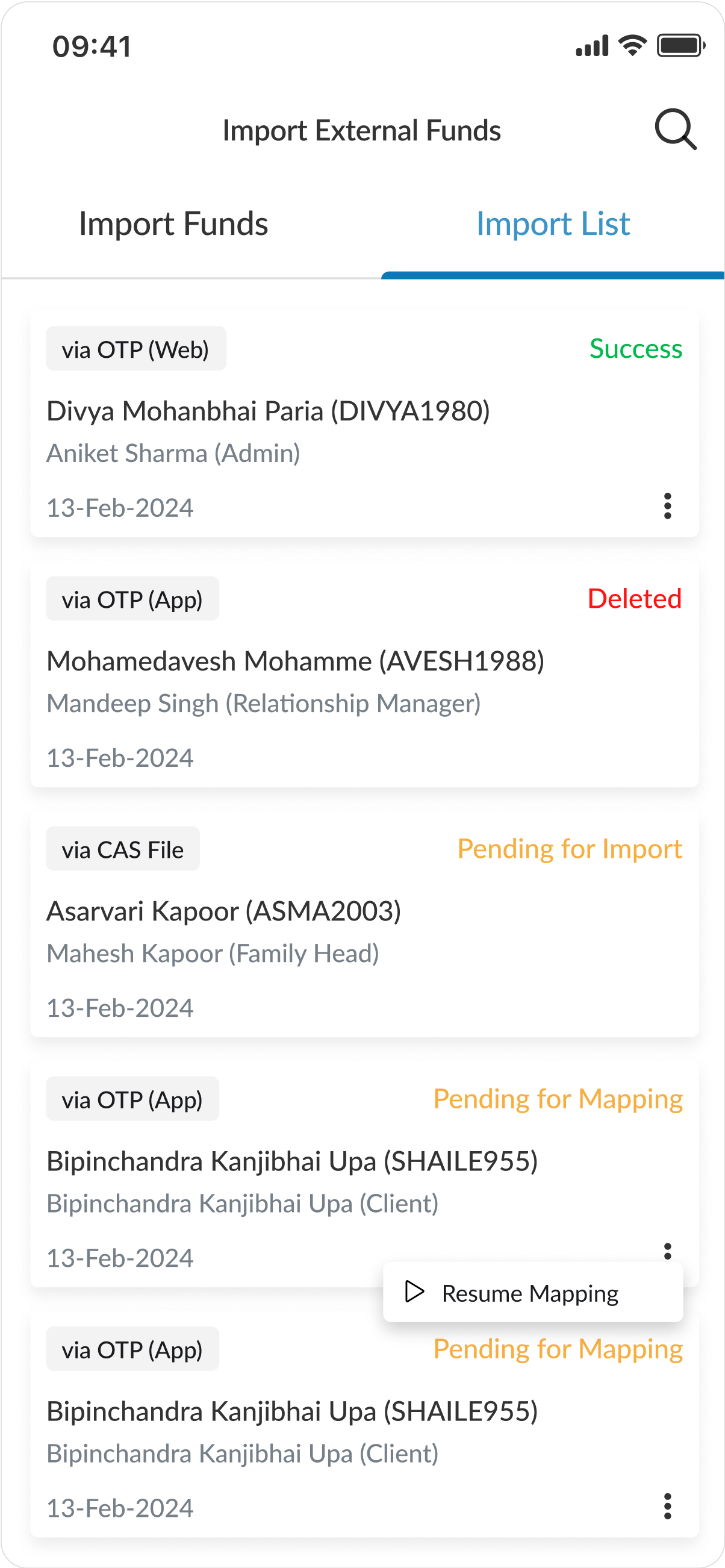 - Client Portal: Family heads and investors can initiate imports with limitations.