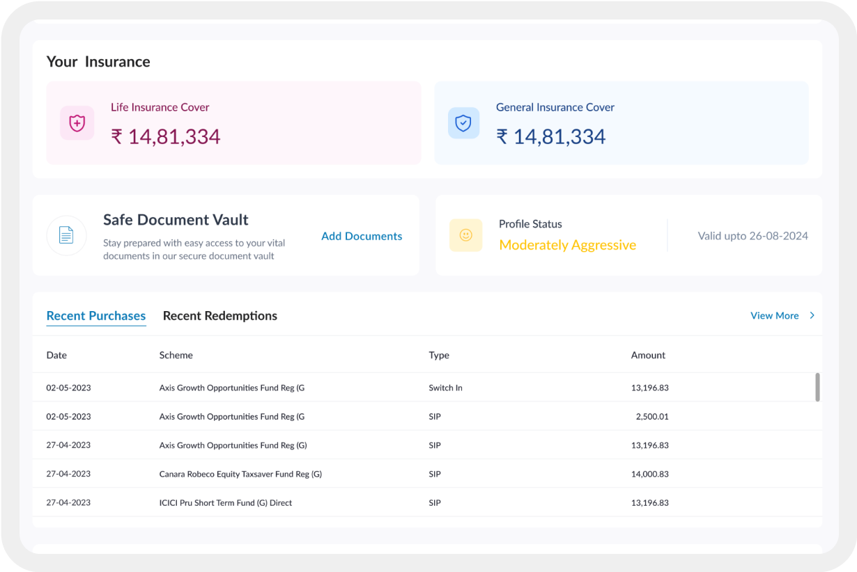 Loan Options: Easy access to loans secured against mutual fund holdings.